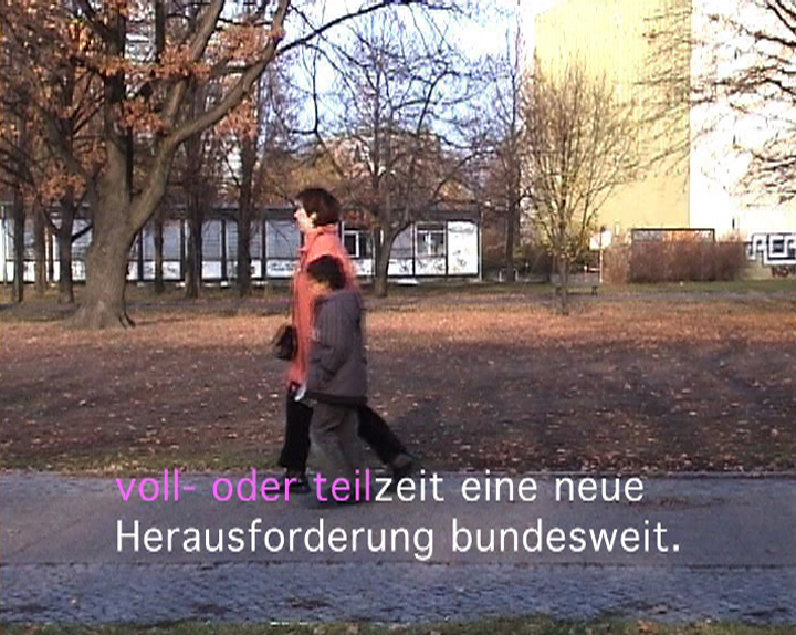 The song of an anonymous, highly qualified job-seeker accompanies passers-by at a park in Berlin. Image, sound and text are assembled in the usual karaoke-video style. The lyrics are based on job-seeker online advertisements. The video invites to reflect about the present labour market’s demands in relation to the job-seeker situations, as